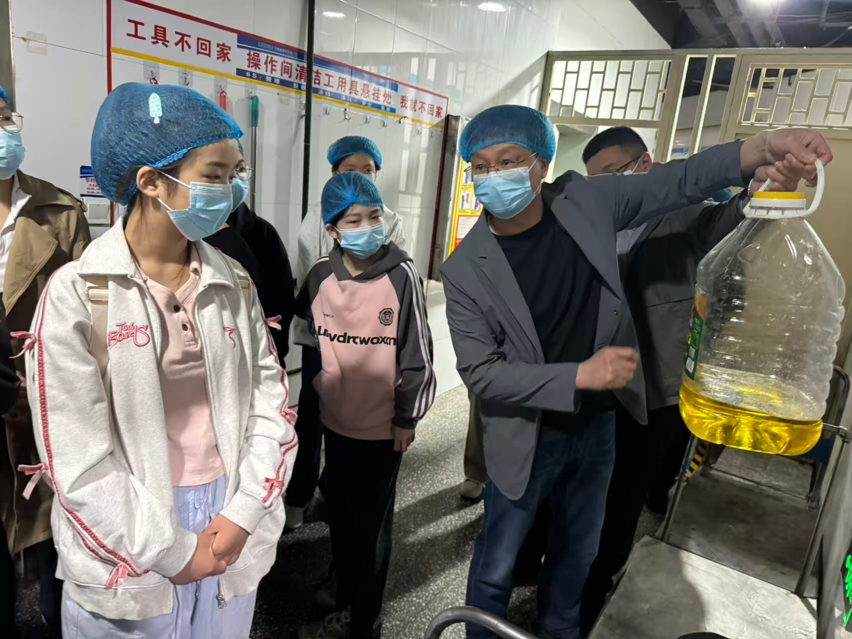 在原材料供应验收区,后勤餐饮管理人员现场演示蔬菜、肉类的品质筛查与重量核验,详解供应商资质审核、索证索票流程:“每批食材需过‘资质查验—感官检查—追踪溯源’三重关,这是食品安全第一道防线。”学生们直观感受食材源头管控的严格,“食品安全无小事”的理念深入人心。